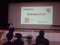12月17日(水)6校時に全校生徒を対象に薬物乱用防止教室を実施しました。今年度は函館税関小樽税関支署の方に来ていただき、前半は薬物の危険性と依存性について学びました。後半は税関支署の方が普段仕事で実際に行っている不正取引や危険薬物がないかの荷物検査を体験しました。今回の講話で薬物には絶対に手を出さないという意識が高まったと思います