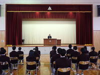 12月24日(水)に冬季休業前集会を行いました。検定合格者の表彰の後、校長先生からの講話と、生徒指導部長から冬休みの過ごし方の説明がありました。今年度は例年より暖かい日が続いていますが、体調管理には気をつけて1/19(月)からまた元気に登校してほしいです。